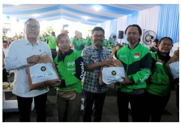 Sebanyak 1.000 paket pangan murah disalurkan kepada para pengemudi ojol melalui kolaborasi Kemenko Bidang Pangan, Bulog, serta perusahaan mitra Grab dan GoTo Gojek.